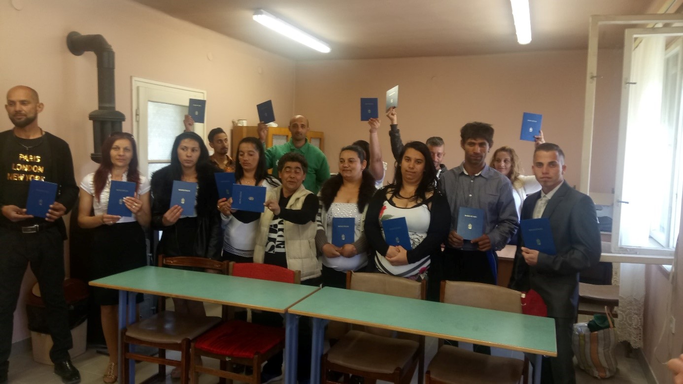 A célcsoport számára szervezett, télen kezdődött burkoló képzést 14 fő végig járta, sikeresen befejezte, büszke birtokosai OKJ-s bizonyítványuknak.